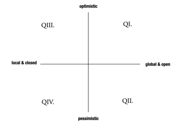 Druhý scénář, znázorněný v druhém kvadrantu (QII.), předpokládá pesimistický vývoj uvolňování karanténních opatření až v prosinci 2020, ale s otevřením hranic a globálního trhu. Podniky budou muset vyčerpat větší část rezerv a opětovný rozjezd bude pomalejší. Návrat do stavu před vypuknutím pandemie přitom také bude záviset na faktorech naznačených výše.