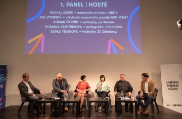Mezi panelisty první části akce patřili zástupci Ministerstva kultury ČR (ministr Martin Baxa, náměstek Michal Šašek). „V pojetí oblasti umění a kultury není shoda, ale dle MK by měla být rovnoměrně pokryta pěti druhy umění: výtvarka, hudebka, dramatická výchova, tanec a audiovizuální tvorba. (…) Nastal čas, aby měly děti možnost v bezpečném a otevřeném prostředí vnímat více druhů umění,“ vysvětlil ministr svůj postoj k aktuálním polemikám o rozšiřování uměleckých výchov na základních školách. Dle Saši Michailidise bylo (mimo jiné) cílem zmírnit konflikt, který se zakládal kromě jiného na nešťastně zvoleném titulku „Stát chce zrušit výtvarku a hudebku“. Hosté obou částí diskuze spíše hovořili o konkrétních příkladech, co umění, kultura a kreativní obory umí přinést společnosti, žákům i pedagogům. Přesto došlo také na jasné pojmenování bariér, mezi něž patří například zacyklenost pedagogických fakult, které se z podstaty systému zaměřují na povinné výchovy, do kterých spadá právě výtvarná a hudební výchova. Jak ale podotkl Roman Černík: „Nemůžete mít obory, protože nemáte učitele, ale nemůžete mít učitele, dokud není zavedena rovnost oborů.“ O nové podobě rámcových vzdělávacích programů je proto možné uvažovat také z této evoluční perspektivy.